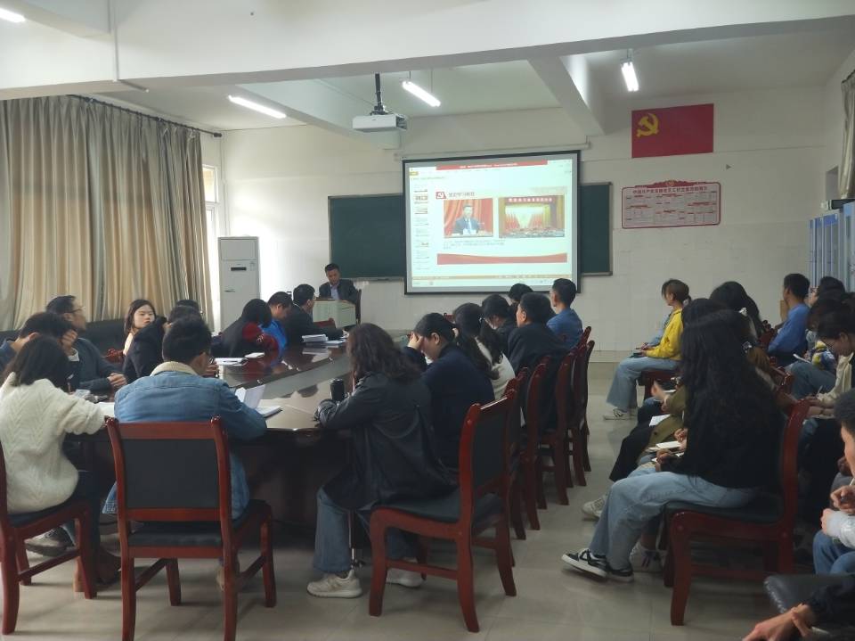 杨智同志(教师支部书记)宣读《中共williamhill中文官网williamhill中文官网委员会开展“牢记殷切嘱托、忠诚干净担当、喜迎建党百年”专题教育认真学习宣传贯彻落实习近平总书记视察贵州重要讲话精神的通知》。