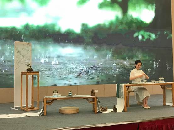 刘阳在颁奖仪式上进行了精彩的茶艺汇报表演,现场掌声连连。刘阳老师将由贵州省人力资源和社会保障厅授予“贵州省技术能手”称号,并按规定晋升职业资格为高级茶艺技师(一级)。
