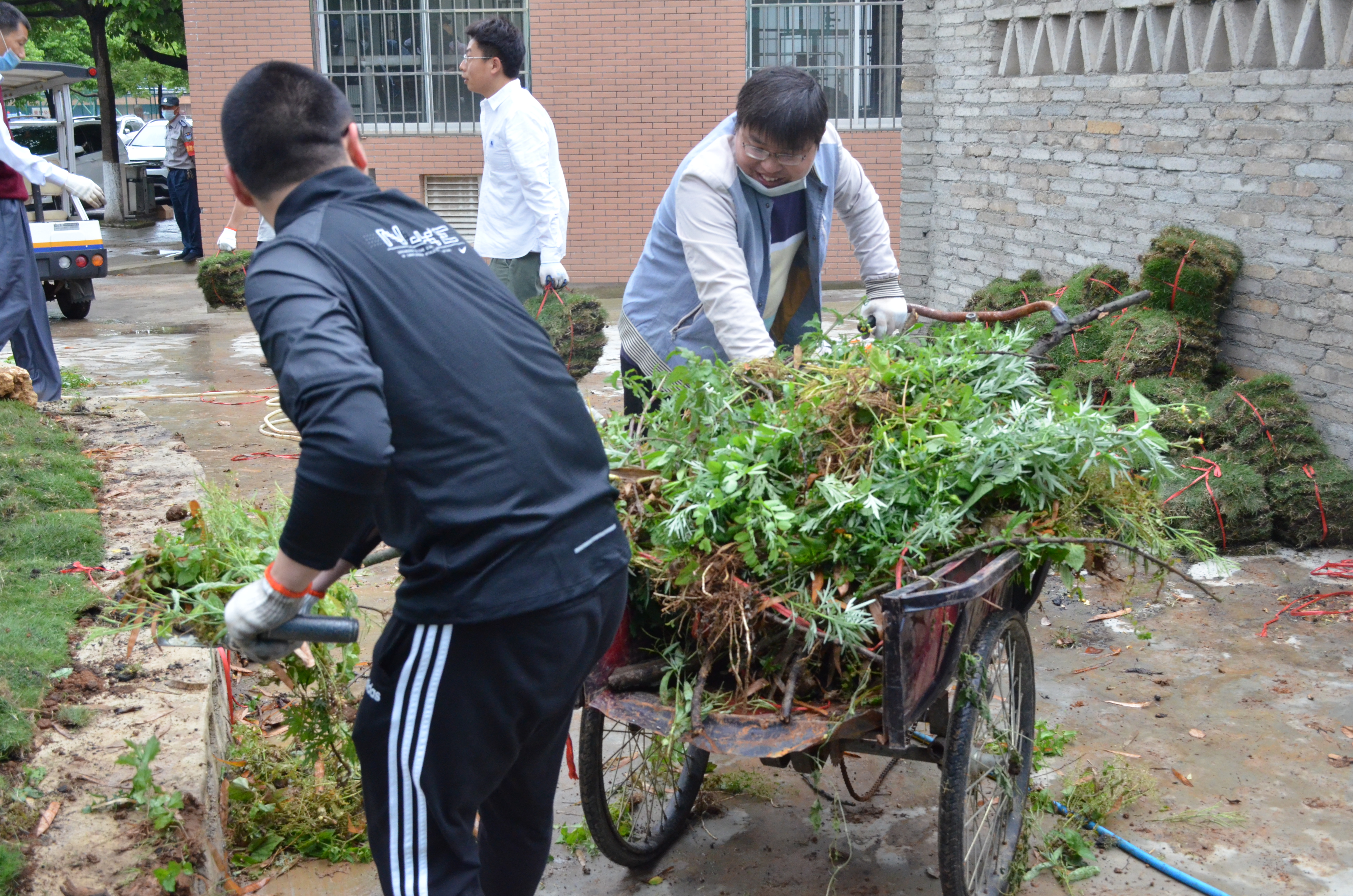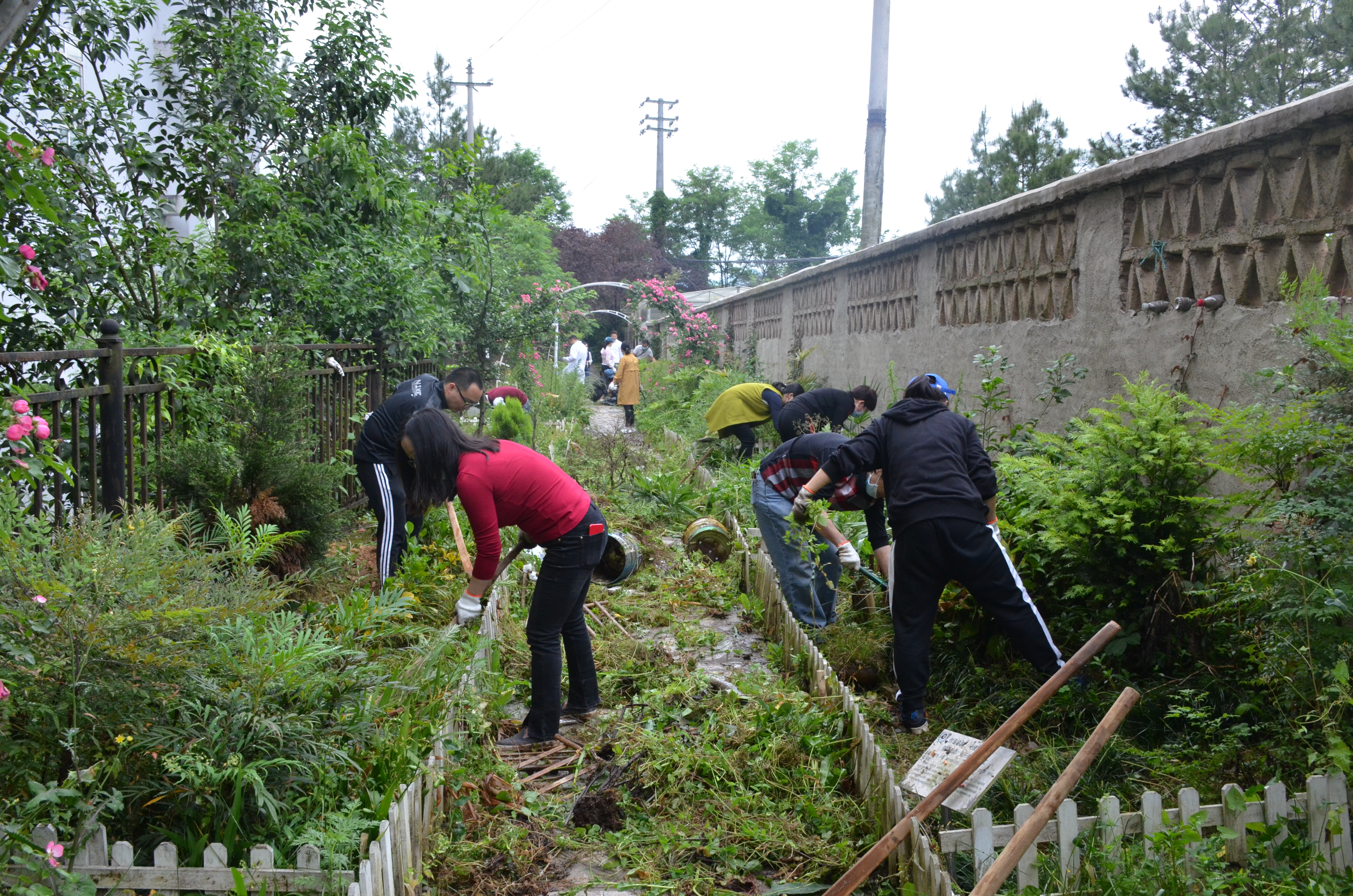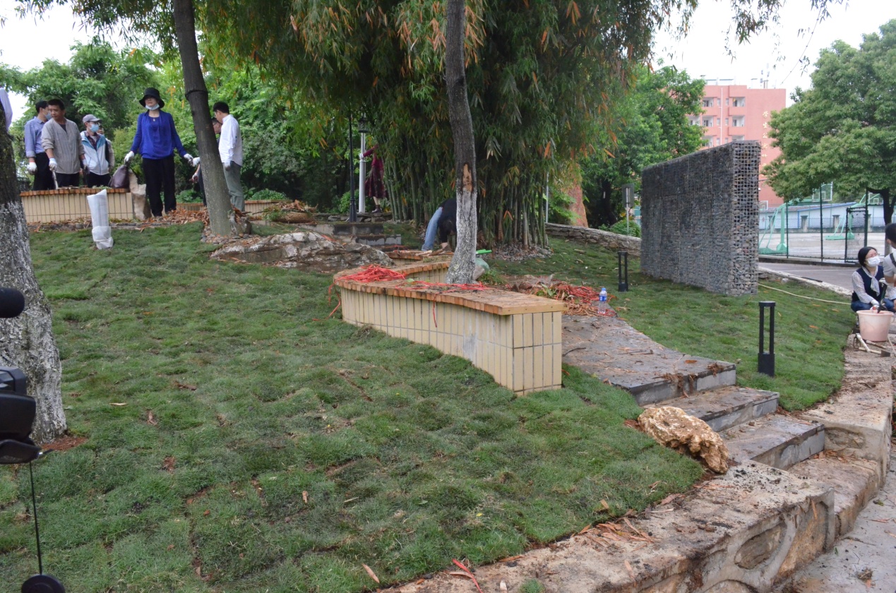 教师党员充分发挥共产党员的先锋模仿作用,撸起袖子,拿起工具,分工合作,齐心协力,对原本杂乱的基地空地进行修整和维护,并铺上草皮完成绿化美化工作,对实验大棚、拾梦小径,滋生的茂密杂草进行清除,美化了环境。大家热情高涨,不怕脏,不怕累,充分展现了共产党员勇挑重担的精神风貌,用实际行动践行初心和使命。