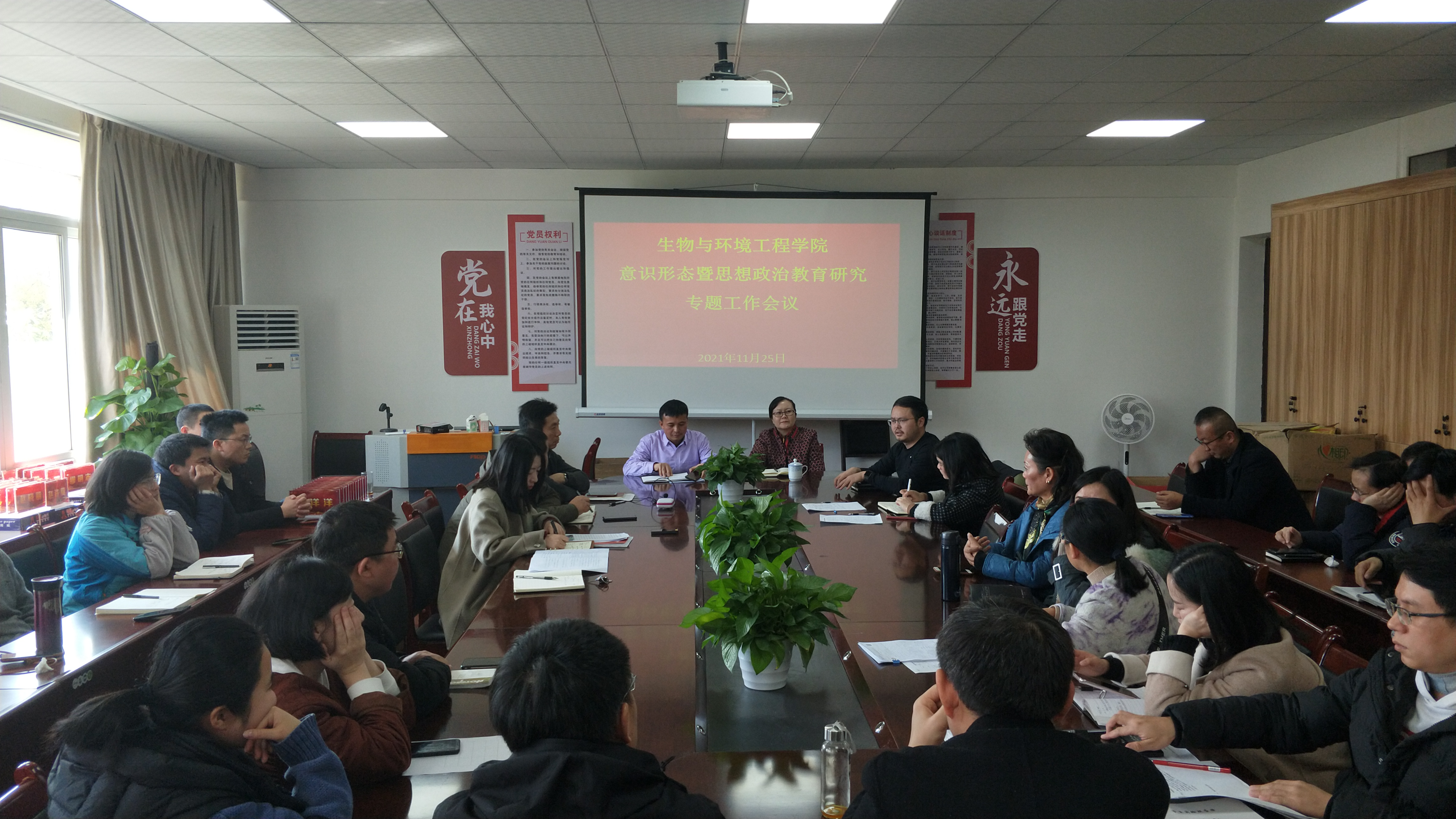 2021年11月25日中午,williamhill中文官网在实验楼A307会议室召开2021年意识形态暨思想政治教育研究专题工作会议。会议由生物与环境工程公司党委书记唐运前主持,全院教职工参加会议。