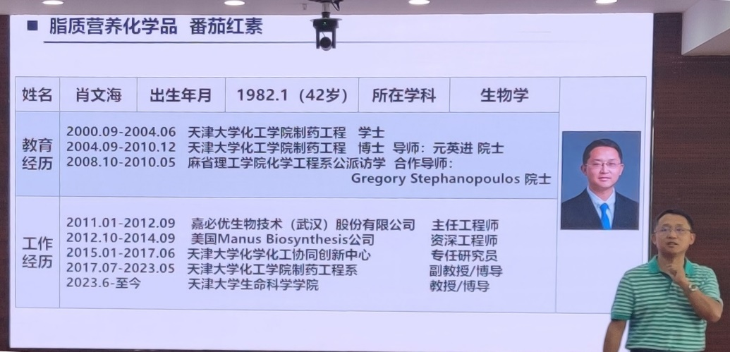 肖文海教授以番茄红素的来源、结构和功能为切入点,重点介绍了番茄红素的生物合成途径、酵母生物合成的优势、以酵母为底盘细胞合成物质的瓶颈、番茄红素酵母合成途径关键基因的挖掘和修饰等合成生物学的前言内容。