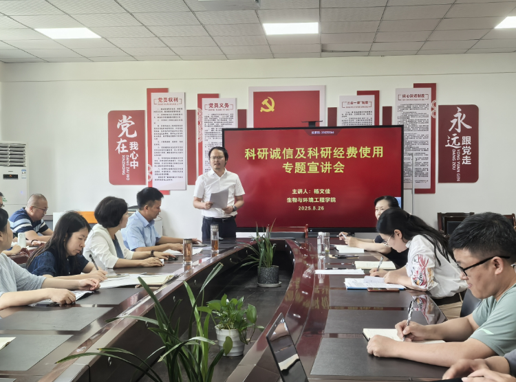 2025年8月26日,公司开展2025年下半年科研诚信及科研经费使用专题宣讲会,公司副经理杨文佳进行宣讲。公司党委书记唐运前主持,全院教职工参加。