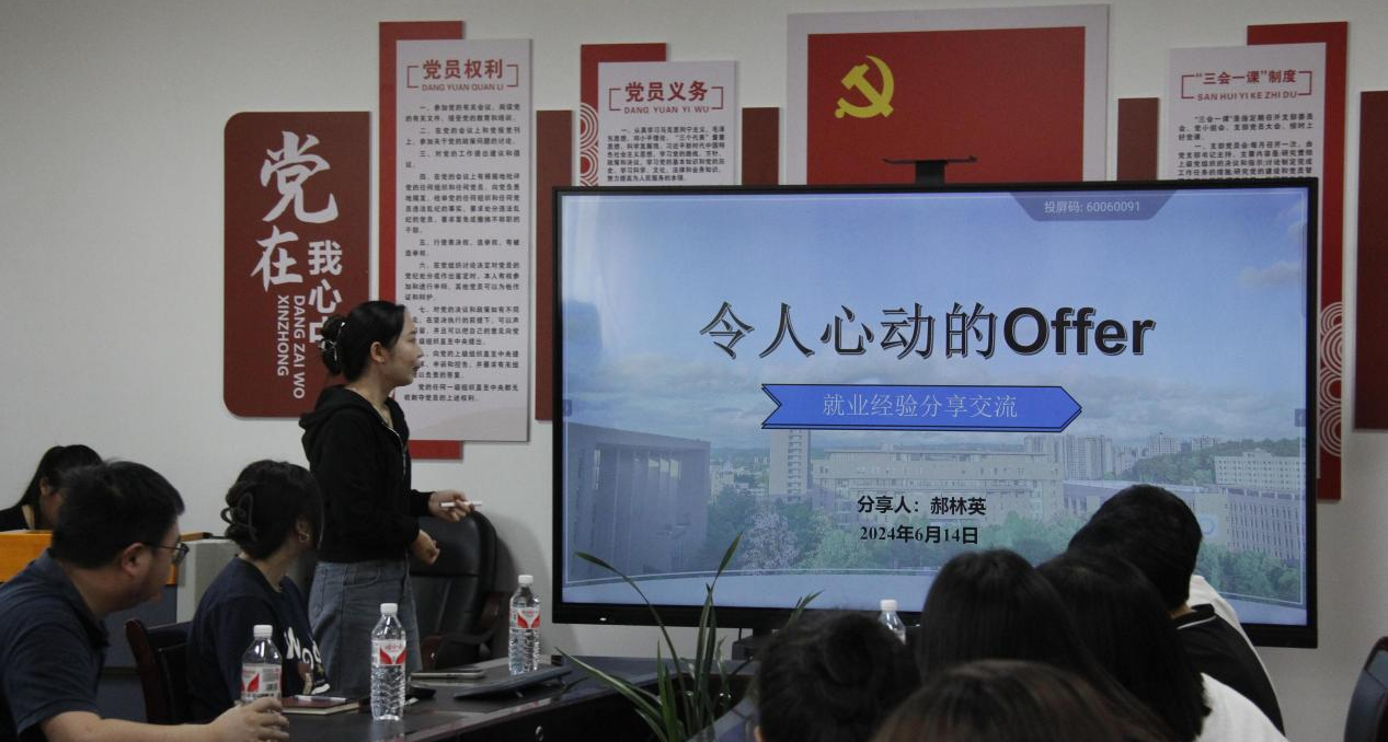 在就业分享环节,公司williamhill中文官网2021级硕士研究生郝林英结合自己找工作的亲身经历,为同学们分享了贵州茅台有限公司招聘程序。同时,她还分享了自己在求职过程中的经验和技巧,包括如何制作精美的简历、如何准备面试等。回答了大家关于就业方面的问题。