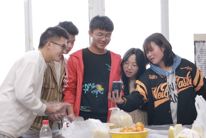 期间,随着同学们的积极参与,一个个奇形怪状的饺子出场了,有圆的、扁的、长的,以及“自闭的烧麦”,不会的同学向会的学习,渐渐也能包出漂亮的饺子,大家有说有笑,分享交流经验,场面十分热闹。在等待饺子出锅的过程中,同学们进行了猜字、分组包饺子比赛,整个过程气氛活跃,比赛最后,员工会主席为在比赛中获胜的同学颁发奖品,并与获奖同学合影留念。