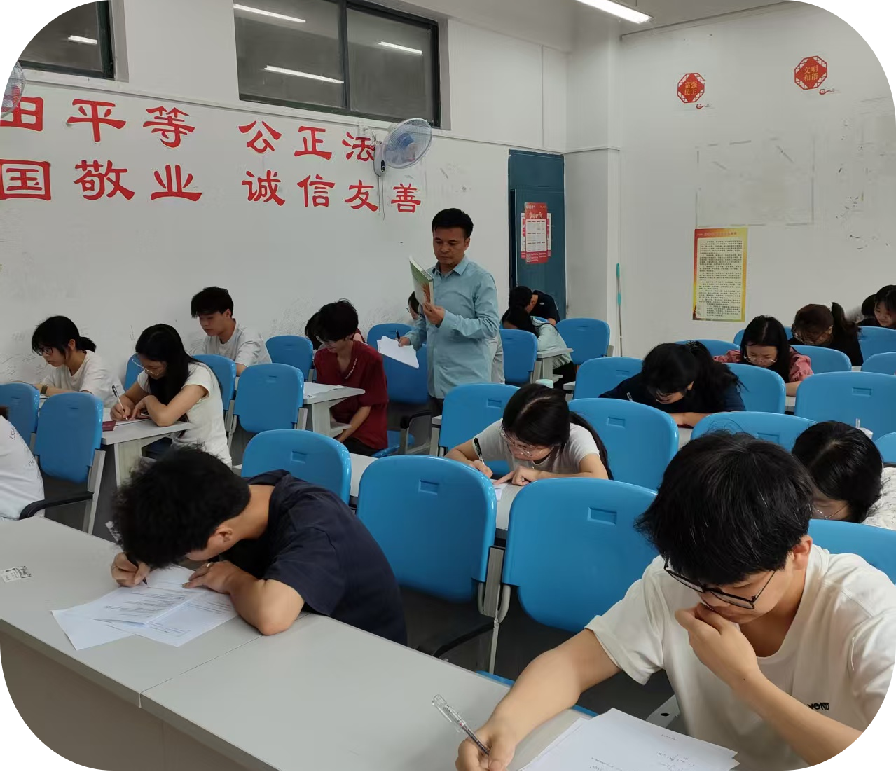 公司由党委书记唐运前、经理刘燕、副书记石登红、副经理杨文佳组建巡考检查组,考试期间每日开展2轮动态巡查,重点检查监考教师履职、考生证件核验、考场纪律等情况。